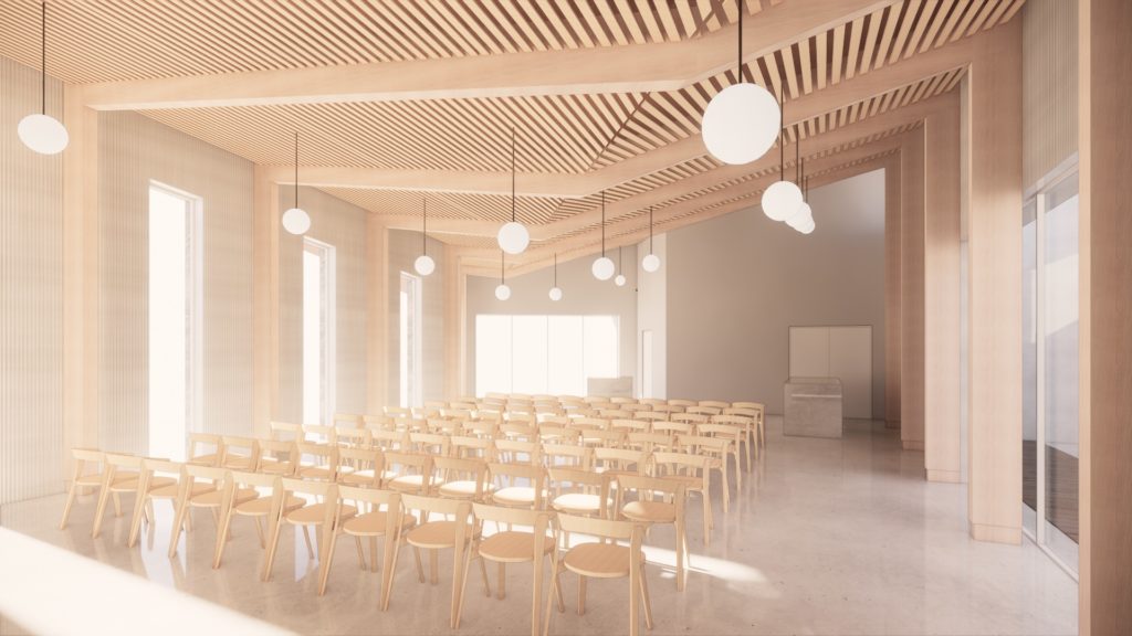 The centre offers two flexible ceremony spaces, a crematory with three cremators (with capacity for a fourth), waiting areas, a dual-purpose café and wake venue, and offices for Drake Memorial Park—creating an inclusive, environmentally conscious space for remembrance.